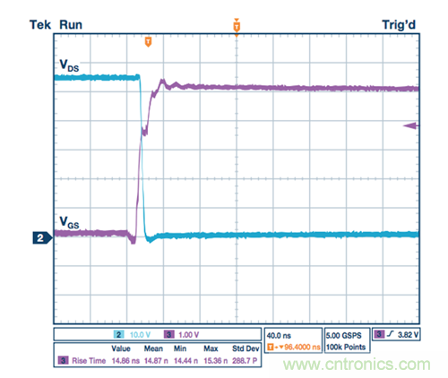 圖3. 有柵極驅(qū)動器的MOSFET導(dǎo)通轉(zhuǎn)換