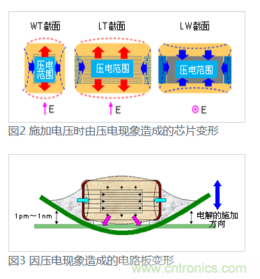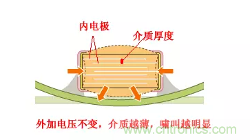 陶瓷介質(zhì)是MLCC主要組成部分,電壓作用下,電致伸縮不可避免。如電致伸縮強(qiáng)烈表現(xiàn)為壓電效應(yīng),則會產(chǎn)生振動。