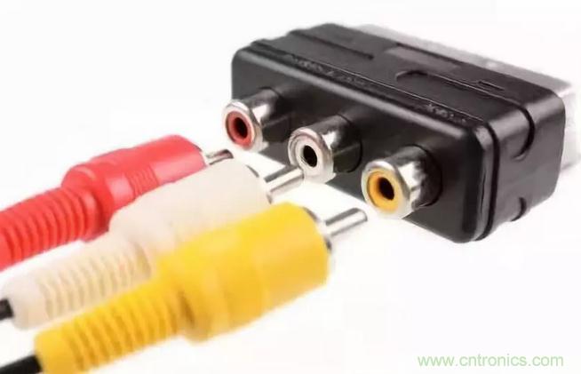 復(fù)合視頻接口是最基本的視頻連接器接口,過去主要用于家用視頻設(shè)備。這種接口常見于老款電視機(jī)、VCR和家用游戲機(jī),線和端子都是黃色。因?yàn)閷UV三種源信號(hào)(Y:亮度,U/V:顏色)進(jìn)行同步復(fù)合(composite),所以稱為復(fù)合視頻。在同一個(gè)信道(line)傳輸亮度和顏色信號(hào),所以畫質(zhì)遠(yuǎn)不如后來出現(xiàn)的其他接口標(biāo)準(zhǔn)。復(fù)合視頻接口輸出的視頻分辨率最高可達(dá)SD(—standard definition)級(jí),也就是480i(NTSC)或576i(PAL)。模擬視頻連接器通常不包含音頻信號(hào),因此如上圖所示,需要單獨(dú)的音頻線。一般用白色(左)和紅色(右)兩個(gè)連接器傳輸立體聲信號(hào)。