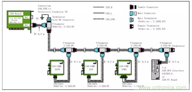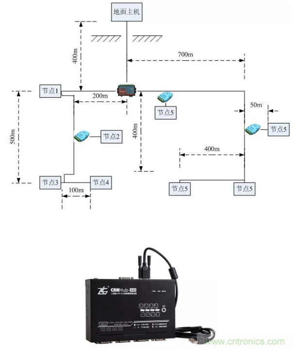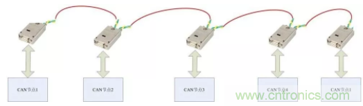 采用CANBridge中繼器,CANHub集線器等組網(wǎng)設(shè)備進(jìn)行分支。這些設(shè)備每路都具備獨(dú)立的CAN控制器,所以可以將每段形成獨(dú)立的直線拓?fù)?,方便施工?nbsp;