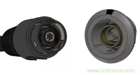 這個標準的高密度(79PIN)連接器有一個外徑為45毫米的金屬外殼、一個螺紋、鎖緊聯(lián)接螺母、一個防水密封圈和1.6mm的爬電/間隙尺寸。它的額定溫度為175℃,循環(huán)使用壽命高。在評估這一標準連接器時,設計者應該考慮這種非被動螺釘聯(lián)軸器是否是適用于特定應用的正確的鎖定機構。