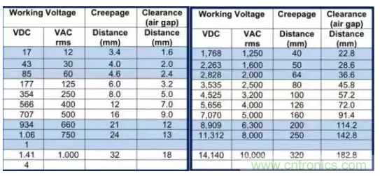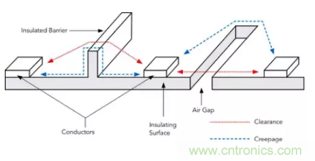 符合MOPP(左)和2 MOPP(右)的間隙和爬電距離要求。