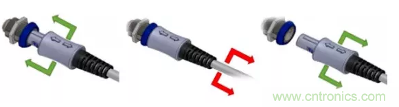為提高安全性,IEC規(guī)定了鎖定機制,防止在醫(yī)療過程中意外斷開。鎖定機構通常與電氣連接空間相沖突,有多種形式,如按鈕鎖定(拇指鎖存)、扭轉(zhuǎn)鎖定(通過旋轉(zhuǎn)鎖?。┮约傲餍械耐评i定系統(tǒng),推拉鎖定系統(tǒng)將閉鎖設計集成到咬合結(jié)構中,消除了其他選項所需的二次動作,緩解它們所面臨的設計挑戰(zhàn)。
