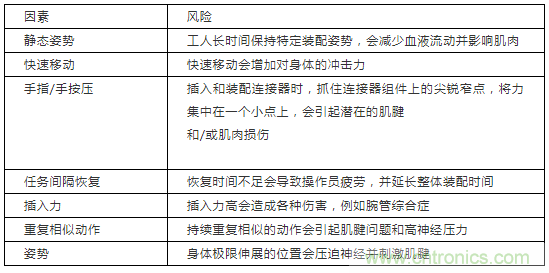 表 1:連接器裝配的相關(guān)風(fēng)險(xiǎn)因素示例