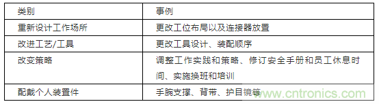 措施:根據(jù)工作場(chǎng)所設(shè)計(jì)原理,審查和評(píng)估工作場(chǎng)所。提出更改建議。與工人一起測(cè)試變更,并實(shí)施必要的修改。