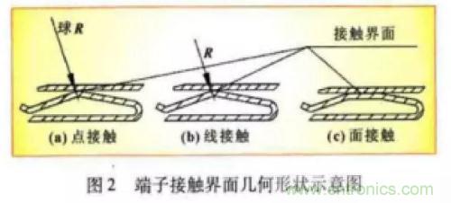 幾何形狀的影響端子接觸界面幾何形狀對(duì)接觸電阻的影響主要是由于不同的幾何形狀會(huì)形成不同的宏觀接觸面積。