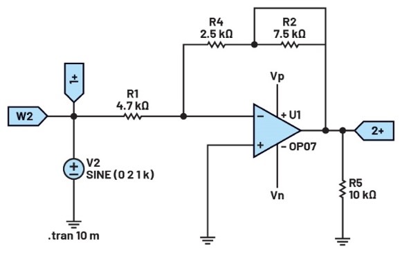 在這種放大器配置中,使用電位計(jì)手動(dòng)控制輸出電壓,通過(guò)適當(dāng)調(diào)節(jié)電位計(jì)來(lái)使輸入反相。