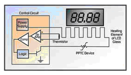 - 安裝獨(dú)立于加熱元件控制器的PPTC器件,保護(hù)LCD和加熱器的控制電路