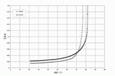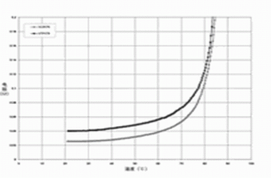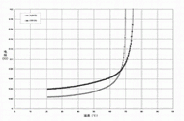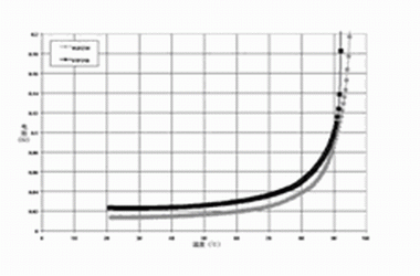 圖2 針對(duì) PolySwitch SRP,VTP及VLR聚合物的PTC材料使用的無(wú)源阻抗 vs, 溫度曲線