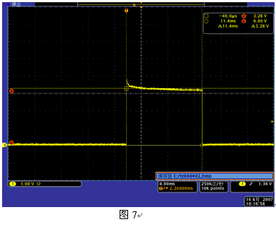 A:我們也可以用示波器測試其保護(hù)IC的短路保護(hù)延遲時(shí)間。