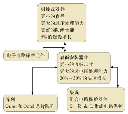 為了看清電路保護元件的市場前景,我們必須了解使用這些電子元件的終端市場的未來趨勢。這些趨勢是密度板應用的增長;USB 2.0和IEEE1394即插即用協(xié)議的接受度增加;終端使用功能的集中和互通;對ESD的日益關注。