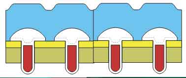 圖4中,每個MOSFET單元,在相同額定的Vds電壓條件下,導通電阻相同,其具有更高的單元密度,在水平和垂直兩個方向都盡可能縮小了尺寸。AOS的AON 6702采用DFN的封裝,其Vds為30V,Vgs在10V條件下Rds(on)為1.9mΩ,同時內部集成的具有優(yōu)異特性的肖特基二極管。
