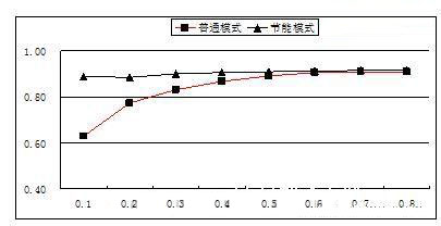 針對電源部分的損耗,戶外電源的工作模式和室內(nèi)電源是一樣的,正常情況下為均流工作模式。市電正常時模塊負載率較低,電源系統(tǒng)大多數(shù)沒有工作在系統(tǒng)最佳效率區(qū)間,因此可以采用電源模塊休眠技術(shù)根據(jù)系統(tǒng)負載狀態(tài),動態(tài)調(diào)整工作模塊數(shù)量,使系統(tǒng)始終工作在最佳效率區(qū)間,從而降低系統(tǒng)的能耗。圖1表示了電源系統(tǒng)在普通工作模式下和節(jié)能模式下的系統(tǒng)典型效率比較。從圖1可看出,采用休眠節(jié)能模式,電源系統(tǒng)的效率在整個負載范圍內(nèi)基本保持不變,有效的降低了電源系統(tǒng)在低負載條件下的能耗。另一方面,對于戶外電源來說,電源系統(tǒng)效率提高會降低設(shè)備倉的發(fā)熱量,降低設(shè)備倉的溫度。