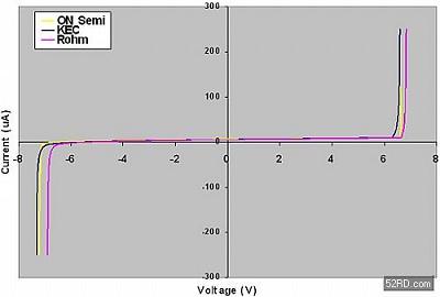 當(dāng)對以上器件的DC性能進行比較的時候,結(jié)果看起來似乎是相同的(參見圖2所示曲線)。此外,它們都聲稱符合IEC61000-4-2第4級標(biāo)準(zhǔn),這就意味著它們將都經(jīng)受住高達(dá)8kV接觸電壓的ESD沖擊。