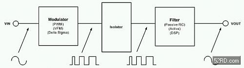 光耦合器多年來都是本質(zhì)安全型系統(tǒng)(intrinsicallysafesystem)的主要隔離元件。模擬光耦合器可將模擬信號傳送通過隔離層,這些光耦合器只要傳輸速率在100kbps以下就具有成本相對較低的優(yōu)勢。不幸的是,光耦合器會佔用很大的空間(每個封裝通常只能提供一個通道,還需要多顆離散元件支援),資料產(chǎn)出也相當(dāng)有限(最多僅數(shù)十個Mbps)。更糟的是,光耦合器需要多顆離散零件與它搭配,其效能還會隨著環(huán)境溫度的增加而下降。