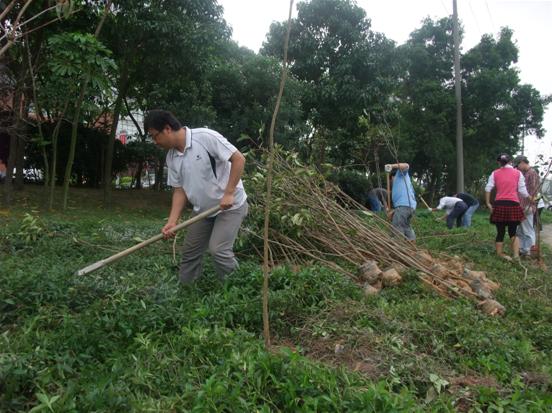 參加此次植樹活動的除了檳城電子的全體員工外,還邀請了檳城的代理商和供應(yīng)商參加??偣?00多人,共分成了4個植樹小分隊。在蔡總的帶領(lǐng)下,我們拿著植樹的工具,拉著小樹苗,迎著春天的暖風(fēng),到了自己的領(lǐng)地。大家的勢頭都很足,精神抖擻,各個都掄起鐵鍬鋤頭,為小樹苗挖樹坑。