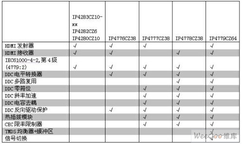 下表列出了恩智浦的主要HDMI接口調節(jié)和ESD保護設備的重要功能。