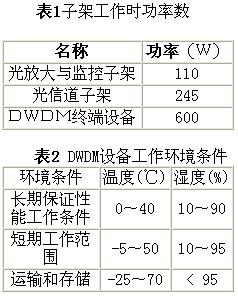 32X2.5GDWDM終端由一個(gè)光放大與監(jiān)控子架和兩個(gè)光信道子架組成。光放大及監(jiān)控子架和光信道子架采用靠背椅結(jié)構(gòu),子架的光、電信號(hào)均采用前出線,高度為11U。3U電源子架提供-48V電源,機(jī)架采用21″標(biāo)準(zhǔn)機(jī)架。子架工作時(shí)的功率參數(shù)和環(huán)境條件見(jiàn)表1與表2。