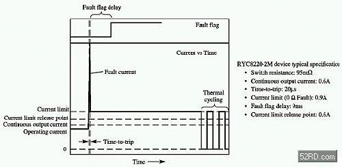 動作時間是指保護電源開關器件啟動其電流限制回路的速度。硅元件所具有的極快的動作時間使其成為功率限制應用中的最佳選擇。與PPTC元件不同之處在于其動作后的電流值能夠保持在相當高的水準,并由電流限制的設定值來決定。電流限制設定值是指硅元件一旦動作后將電流所限制到的標準,其數(shù)值根據(jù)故障狀態(tài)的嚴重程度來變化,通常定義為故障電阻的函數(shù)。對于小功率的應用,電流限制值應該盡量設低。