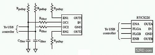 在匯流排供電的集線器、雙模式的集線器以及低功率主機中,PowerSwitch元件是最為常用的解決方案。這種元件還可用于USB設備中作為沖擊電流限制元件。PowerSwitch元件內(nèi)置了包括電源開關功能的電流限制功能,提供較低的導通電阻和快速的電流限制特性。這些特性均有其應用在功率有限的主機中。在這種主機中加入電源開關功能,就可以通過關閉出現(xiàn)故障的埠端來作最大限度地節(jié)省能量。