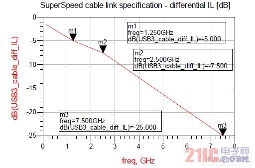 帶ESD防護(hù)的USB3.0超高速鏈路的信號(hào)完整性分別在帶ESD防護(hù)和未帶ESD防護(hù)的情況下,對(duì)圖1所示的整個(gè)USB3.0超高速鏈路執(zhí)行了信號(hào)完整性模擬。整個(gè)收發(fā)部分具備90歐姆差分阻抗,考慮了發(fā)送側(cè)和接收側(cè)的寄生效應(yīng)。測(cè)得數(shù)據(jù)表明了USB3.0電纜的狀態(tài)。規(guī)定最長(zhǎng)USB3.0電纜長(zhǎng)度為3米。