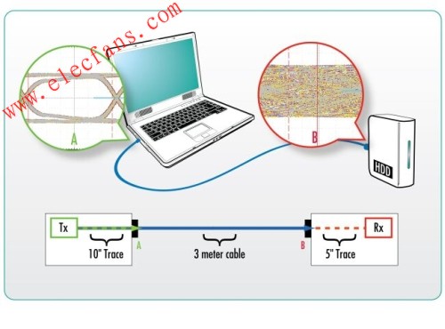 為滿足兼容性要求,USB3.0信號(hào)必須可以通過(guò)3米長(zhǎng)的線纜,并保持信號(hào)眼圖開(kāi)口有足夠的寬度。但這只是部分的路徑,因?yàn)樵诩嫒菪詼y(cè)試中測(cè)量的是接收器經(jīng)過(guò)均衡化處理過(guò)后的信號(hào)。舉例來(lái)說(shuō),在一般的筆記本電腦架構(gòu)中,USB控制芯片到連接器的距離大約是10英寸,因此信號(hào)實(shí)際上可能另外經(jīng)過(guò)大約半米的路徑和數(shù)個(gè)連接器。