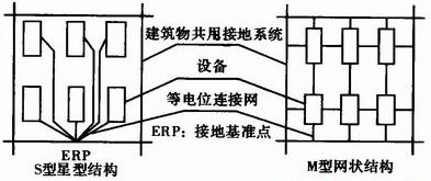(4)等電位保護(hù)。電子設(shè)備的機(jī)柜機(jī)架、金屬外殼、金屬管槽、屏蔽線纜外層、信息設(shè)備的防靜電接地端、安全保護(hù)接地端、浪涌保護(hù)接地端等,在同等電位連接網(wǎng)絡(luò)的接地端子相連接時(shí),均需采用最短的距離。控制系統(tǒng)的等電位連接,通常分為“S型星型結(jié)構(gòu)”以及“M型網(wǎng)狀結(jié)構(gòu)兩種”,其中在控制系統(tǒng)中設(shè)備較少或者進(jìn)行局部控制時(shí)通常采用S型星型結(jié)構(gòu),而在相對(duì)較大的控制系統(tǒng)中則采用M型的網(wǎng)狀結(jié)構(gòu)。等電位連接的基本方式如圖3所示。