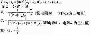 單片機(jī)測(cè)得振蕩輸出的頻率,計(jì)算后即可得到電阻和電容的值。不同量程對(duì)應(yīng)不同的電路參數(shù),利用開關(guān)可方便地選擇對(duì)應(yīng)不同量程的對(duì)應(yīng)電路。