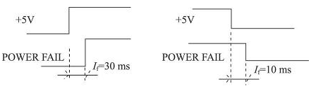 利用+ 5 V 及PF ( Power FAIL) 信號進行比較, 在+ 5 V 掉電時, PF 信號至少需維持10 ms 時間,以便存儲相關信息。欠壓保護電路如圖5 所示。