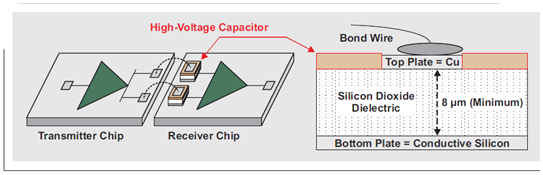 圖 2 電容隔離器內(nèi)部結(jié)構(gòu)的簡(jiǎn)化結(jié)構(gòu)圖[page]