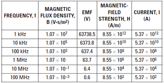 EMF 為以伏特為單位的電勢(shì),f 為磁場(chǎng)頻率,而 A 為以平方米 (m2) 為單位的環(huán)路面積。