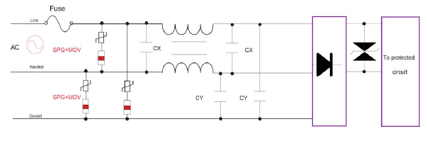9、專用于高頻通訊信號線路進(jìn)行防護(hù),一般不能直接用在有源電路上進(jìn)行防護(hù),在有源線路中它必須配合限壓型(MOV、HYPERFIX)的保護(hù)器件來同時使用。