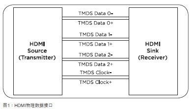 HDMI的物理數(shù)據(jù)接口包含四個最小化差分信號傳輸(TMDS)對:三個數(shù)據(jù)差分對通道和一個時鐘差分對通道,如圖1所描述。
