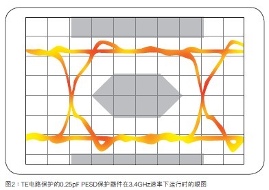 TE電路保護(hù)的0.25pFPESD保護(hù)器件在3.4GHz速率下運(yùn)行時的眼圖表現(xiàn)如圖2所示。