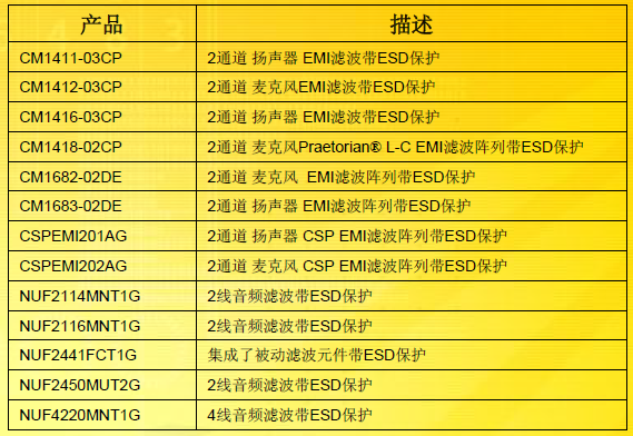 ONSEMI音頻信號濾波帶ESD保護(hù)