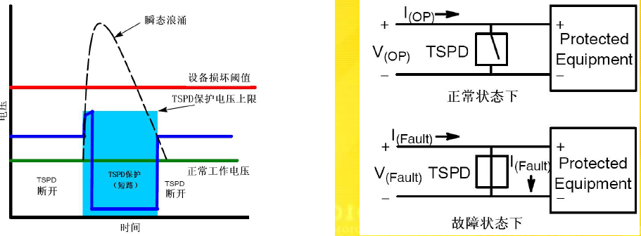 消弧保護(hù)器件:當(dāng)一個激勵觸發(fā)時,通常是產(chǎn)生一個短路通道來實現(xiàn)保護(hù)目的。如晶閘管浪涌保護(hù)器件TSPD