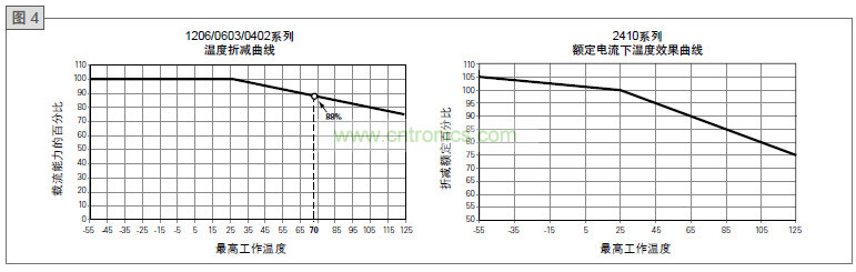 保險絲是一種溫度敏感器件。因此,工作溫度對保險絲性能和壽命具有一定影響。保險絲選型時應(yīng)考慮工作環(huán)境溫度。圖4給