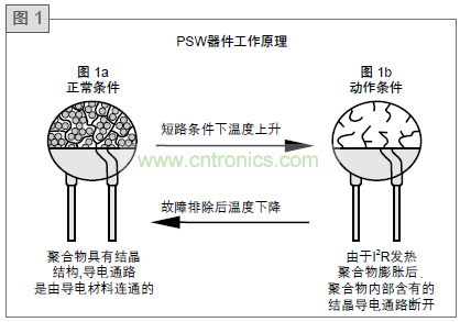 在正常工作狀態(tài)中此器件電阻值遠小于電路中的其余的電阻。但是對過流情況做出反應(yīng),器件電阻提高(動作),從而將電路中的