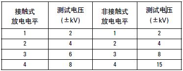 表1 接觸放電和非接觸放電方法的測試電平