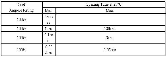 保險絲需要有一定的過載能力:UL規(guī)范保險絲的最大不熔斷電流是110%In; IEC規(guī)范保險絲的最大不熔斷電流是150%In或120%In保險絲也要求在超過限量的過載電流時能及時地?zé)龜啵篣L規(guī)范保險絲的最小熔斷電流在130%In 左右;  IEC規(guī)范保險絲的最小熔斷電流在180%In 左右;