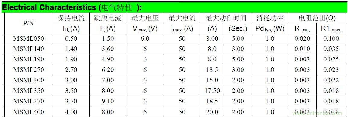 具有廣泛應(yīng)用范圍的自恢復(fù)保險絲系列產(chǎn)品