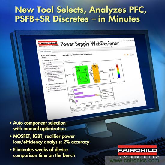飛兆半導(dǎo)體公司最近將Power Supply WebDesigner (PSW) - 一款在線設(shè)計(jì)和模擬工具,可在一分鐘內(nèi)提供完整的設(shè)計(jì)–進(jìn)一步強(qiáng)化,引入傳動(dòng)系分立式(MOSFET/IGBT/整流器)器件功率損耗和效率分析工具。