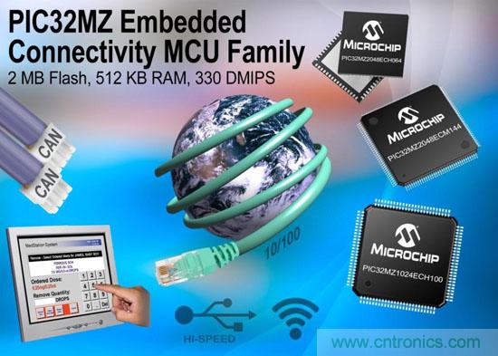 PIC32MZ嵌入式連接(EC)系列32位MCU提供了330 DMIPS和3.28 CoreMarks™/MHz的卓越性能,以及有雙存儲區(qū)的現(xiàn)場升級閃存(高達(dá)2 MB)、512 KB的大容量RAM,以及支持當(dāng)今要求嚴(yán)苛的應(yīng)用所需的連接外設(shè)。同時,Microchip還推出了業(yè)界最全面的32位單片機(jī)