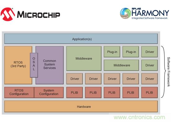 [page]Microchip的全新MPLAB Harmony框架提供了一個將經(jīng)過Microchip測試、調(diào)試和可互操作的代碼集于一體的抽象而靈活的統(tǒng)一代碼源,從而有助于進(jìn)一步縮短開發(fā)時間并降低成本。此外,Harmony提供了一個模塊化架構(gòu),能夠高效集成多個驅(qū)動程序、中間件和函數(shù)庫,同時提供一個獨立于實時操作系統(tǒng)的環(huán)境。預(yù)驗證和集成不僅加快了開發(fā),而且也提高了重復(fù)使用率。目前,Harmony框架中包括來自Express Logic、FreeRTOS、InterNiche、WITTENSTEIN High Integrity Systems和wolfSSL等第三方的產(chǎn)品,還有許多正在開發(fā)中。