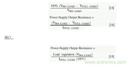 利用[12]式,可計(jì)算出RBISTABLE為0.320Ω。方程[9]的圖形表明,電源效率隨著RS的增加而跌落,在RS = RBISTABLE時(shí)跌落達(dá)20%。注意:該結(jié)論并不具有普遍性,對于每個(gè)應(yīng)用,必須分別進(jìn)行計(jì)算。RS的來源之一,是所有電源無法避免的、有限的輸出電阻,它可通過負(fù)載調(diào)整來確定,后者通常定義為: