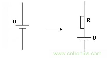 實際電路中,電源存在內(nèi)阻,相當于串聯(lián)一個電阻,此時輸出電壓就會有所下降,對電路中的干擾不可忽略。