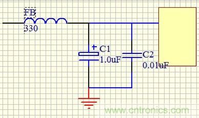 在輸入電源上,數(shù)字電路干擾是一個一個小尖峰,不能用大電容濾波,只能用小電容;濾波電容一大一小(小電容濾除高頻干擾,大電容濾除低頻干擾)一定要放在根部,不要放太遠,也不要放在電路板背面。