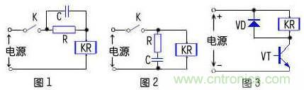 KR在VT導(dǎo)通時(shí),上面電壓為上正下負(fù),電流方向由上向下。在VT關(guān)斷時(shí)會(huì),KR中電流突然中斷,會(huì)產(chǎn)生感應(yīng)電勢(shì),其方向是力圖保持電流不變,即總想保持KR電流方向?yàn)橛上轮料?。這個(gè)感應(yīng)電勢(shì)與電源電壓迭加后加在VT兩端,容易使VT出穿。為此加上VD,將KR產(chǎn)生的感應(yīng)電勢(shì)短路掉,電注是你所說(shuō)的“順時(shí)針?lè)较蛟诙O管和繼電器所的小回路里面流動(dòng)”,從而保護(hù)VT。圖2中的R、C也是利用C上電壓不能突變的原理,來(lái)吸收感應(yīng)電勢(shì)。(VT三級(jí)管,KR繼電器,VD續(xù)流二極管)