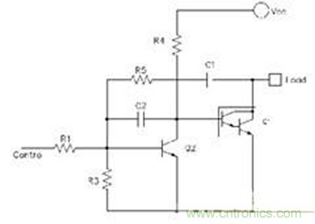 先來看看電路在沒有C2的情況下是如何工作的:控制端由低電平拉升到高電平的過程中,集電極電流增長(zhǎng)使得三極管從截止區(qū)—》放大區(qū)—》飽和區(qū)變化,從而使三極管從關(guān)斷狀態(tài)(截止)變?yōu)殚_通狀態(tài)(飽和),注意,開通過程中,集電極電流增長(zhǎng)全部靠Vcc提供;反過來,控制端從高電平變?yōu)榈碗娖竭^程中,通過R3對(duì)基極電荷的泄放,加速控制三極管從飽和區(qū)—》放大區(qū)—》截止區(qū)變化,并最終變?yōu)殛P(guān)斷狀態(tài)。