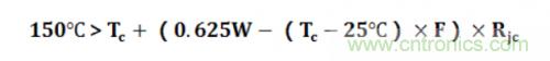 其中Tc為芯片的外殼溫度,PD為芯片在該環(huán)境中的耗散功率,Tj表示芯片的結(jié)點溫度,目前大多數(shù)芯片的結(jié)點溫度為150℃,Rjc表示芯片內(nèi)部至外殼的熱阻,Rcs表示外殼至散熱片的熱阻,Rsa表示散熱片到空氣的熱阻,一般功率器件用Rjc進行計算即可。